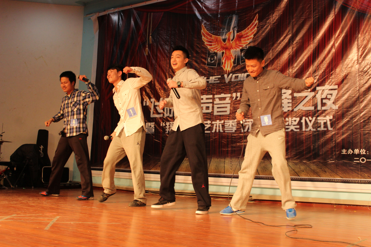 当晚,首先进行的是飞院好声音决赛,12名飞院好声音入围选手热情如火,为在场观众带来精彩纷呈的听觉盛宴。一首唯美的《我怀念的》拉开了决赛小组对决的帷幕。歌手们向大众展示自己独特而优美的嗓音,有的低沉,有的欢快;时而忧郁,时而激昂,引得台下观众阵阵喝彩,现场气氛高涨。经过第一轮初露锋芒的热身后,再经过现场评委“准专业”的点评,台上的歌手们表现的更加自然与沉稳,歌声也愈发优美与专业,评委及嘉宾们纷纷露出赞赏的目光,现场观众喝彩连连。经过层层筛选及评委打分,大赛的冠军由12级学员武鹏获得,亚军由11级学员汤海涛摘得, 11级学员白天和12级学员陈晨并列获得季军。