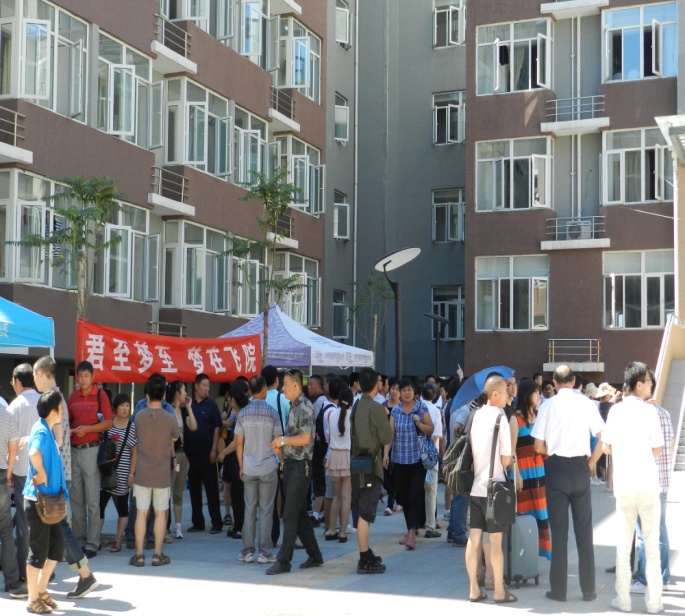 迎新当天,学2公寓一改暑期的安静,到处充满活力,“热烈欢迎飞行学院2012级新学员”、“君至梦至,梦在飞院”的大红条幅,更是让整个迎新会场充满生机。精心布置后的新生接待点整齐有致,多而不乱,各班级的标志显而易见,极大地方便了新学员们办理各种入学手续,得到学生和家长的一致好评。