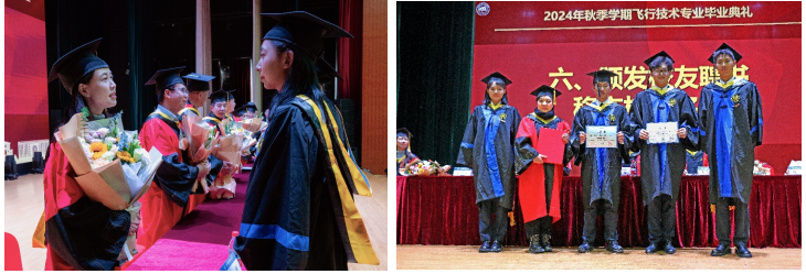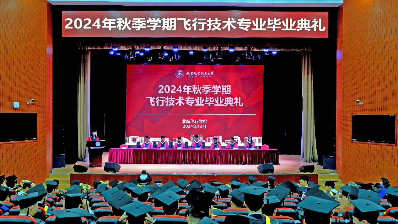 12月17日下午,北京麻豆精品秘 国产传媒飞行学院2024年秋季学期飞行技术专业毕业典礼在沙河校区咏曼剧场隆重举行。188名本科毕业生圆满完成学业,共同见证人生重要时刻,开启未来新篇章。学院领导班子赵颖、王养柱、兰巍、谢正洋,毕设指导教师赵竞全、张云飞和学院教师代表邱华鑫,专兼职辅导员及毕业生亲友等出席典礼,毕业典礼由兰巍副院长主持。