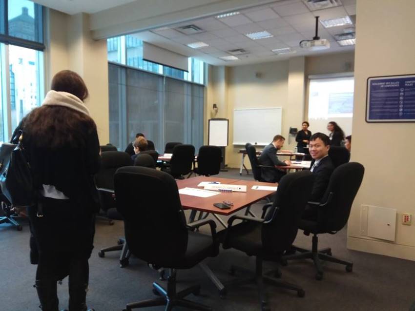 晚上黄洁老师在唐人街中餐馆为代表团一行接风洗尘,师生间愉快交流。学生们尤其感兴趣国际民航组织ICAO的组成部门和工作职能,ICAO举办NGAP峰会的目的和意义,以及会议的关键流程等,黄洁老师一一详细解答。晚宴结束后,尽管行程辛苦,代表团还是在于院长的主持下,召开了赛前工作会议,就大家申报的辩论赛主题和参考资料,逐一分解并分析,辩手们深感责任重大亦动力无限。