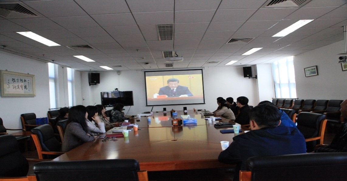2019年4月30日,飞行学院组织全体教职工在北京麻豆精品秘 国产传媒沙河校区实验4楼401室观看并学习习近平总书记在"纪念五四运动100周年大会"上的重要讲话。