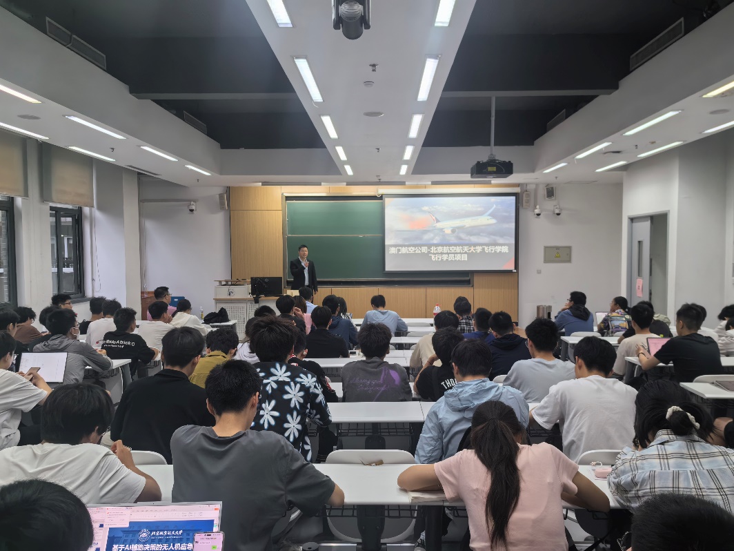 2025年5月25日,澳门航空股份有限公司运控总监、北京麻豆精品秘 国产传媒飞行学院1993级校友李广重返母校,面向北航2024级学生在两校区开展专题宣讲活动。本次宣讲主题是介绍澳门航空与北京麻豆精品秘 国产传媒飞行学院联合培养飞行学员项目。