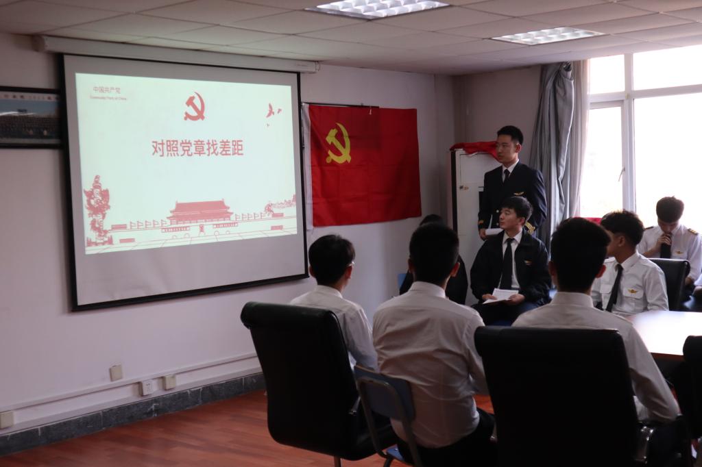 飞行学院两学生支部“学新党章”党课学习暨“对照党章找差距”为主题的集中学习会